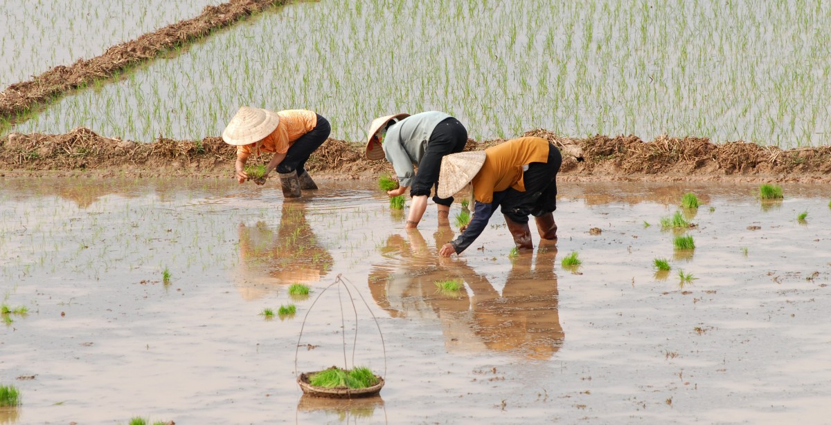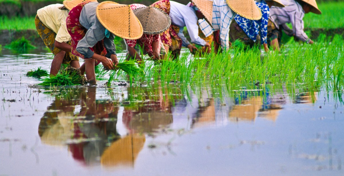 L’eau a été évacuée de la rizière une à deux semaines auparavant afin de faciliter la récolte. Le riz est récolté en le fauchant avec sa paille ou en coupant seulement les panicules. Le riz est alors battu. Cette opération s’effectue en Asie à la main, en frappant les panicules sur des fûts, ou en utilisant des petites batteuses !