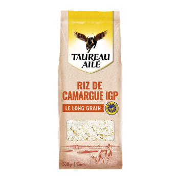TAUREAU AILÉ A SÉLECTIONNÉ POUR VOUS LE RIZ LONG GRAIN IGP RÉCOLTÉ DANS LES RIZIÈRES ENSOLEILLÉES DE CAMARGUE