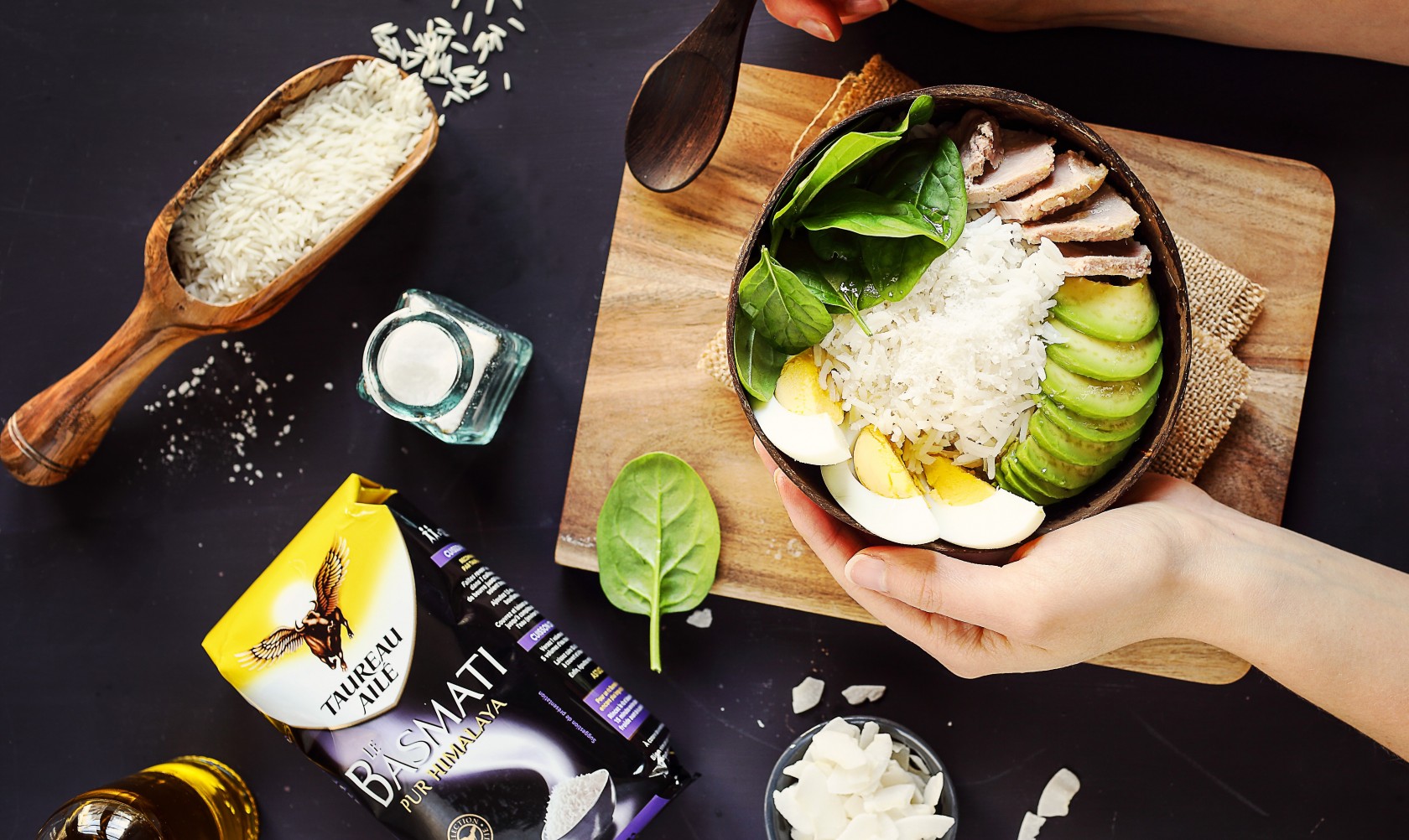 Buddha bowl au riz basmati pur himalaya et noix de coco