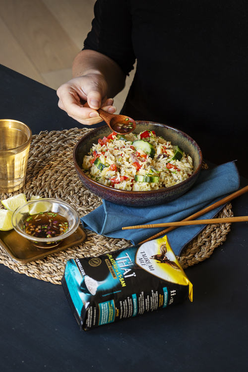 Versez la sauce Nuoc-mâm dans un ramequin, ajoutez l’oignon réservé et un peu de ciboulette ciselée. Au moment du service, chacun assaisonnera son plat de sauce.