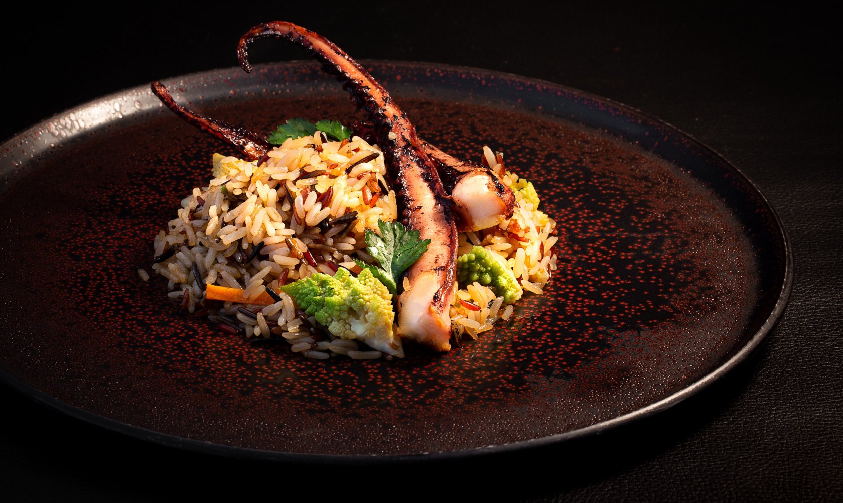 Ajouter de la sauce aigre-douce et réserver au chaud.Rôtir les tentacules de poulpe dans une poêle à l’huile d’olive.
