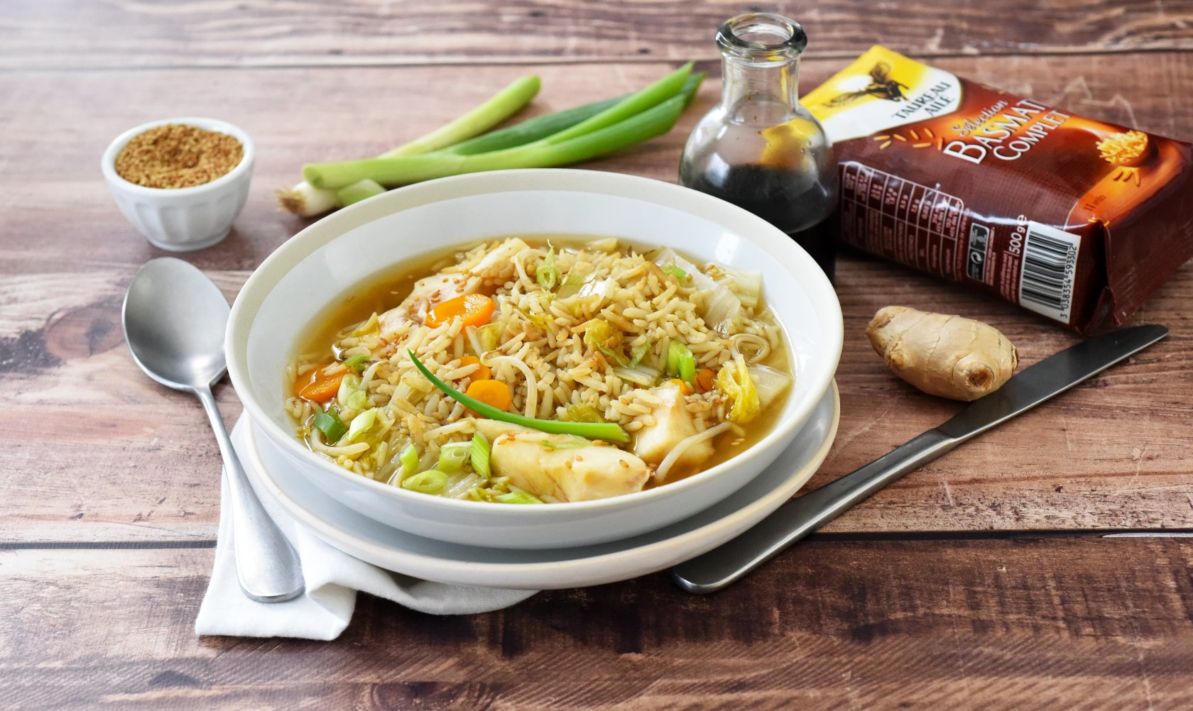 Pendant ce temps émincez le chou chinois et coupez le cabillaud en cubes, puis ajoutez-les dans la casserole. Poursuivez la cuisson 3 minutes.